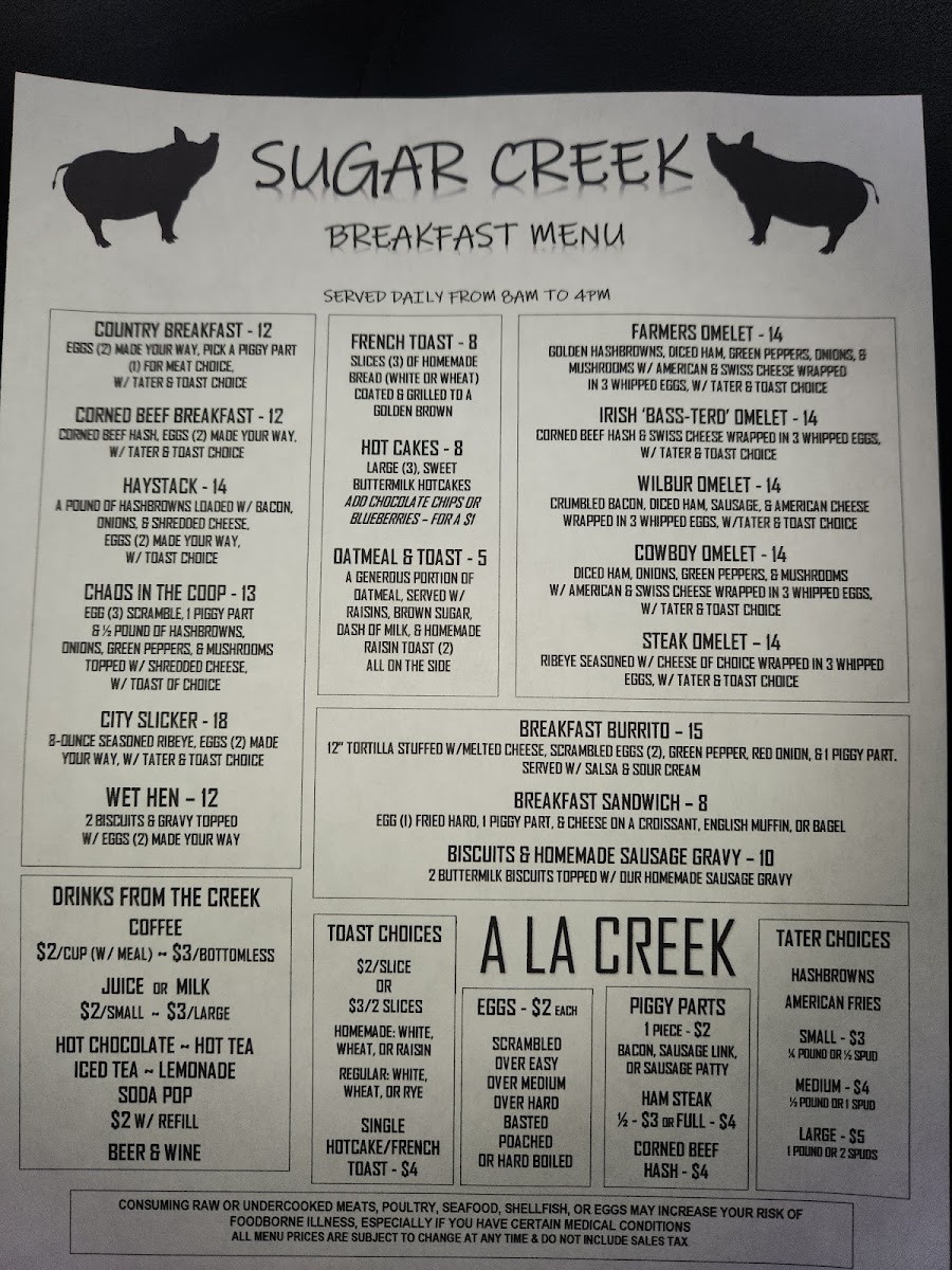 Overall, Sugar Creek Restaurant is not just about great food; it’s about creating memories in a cozy setting. Prepare to be charmed!