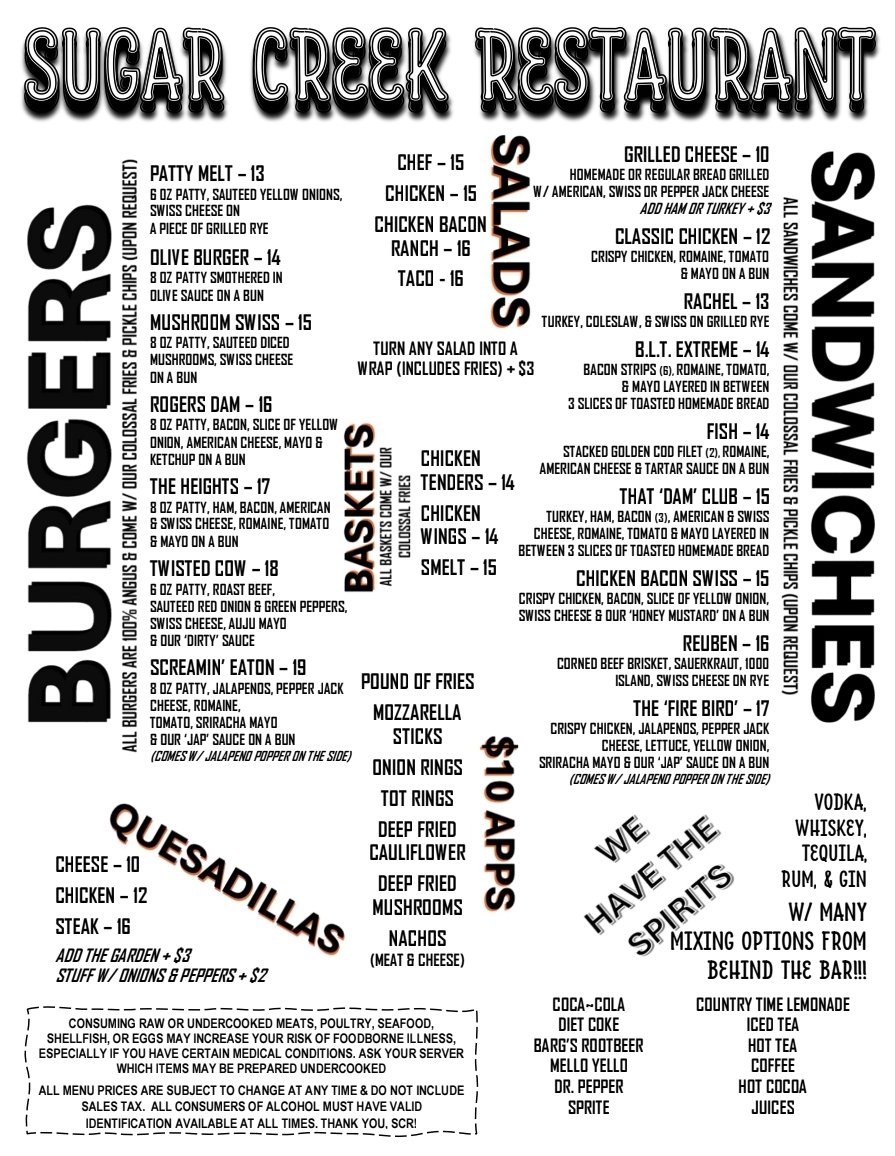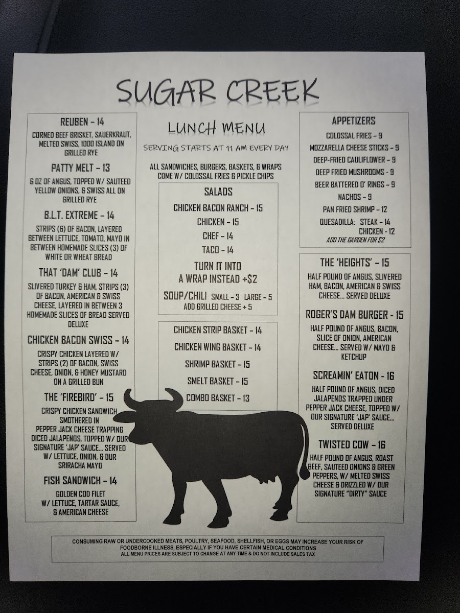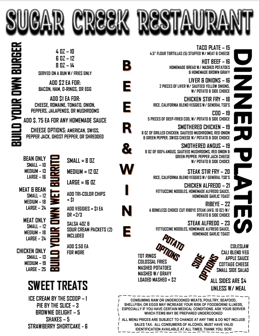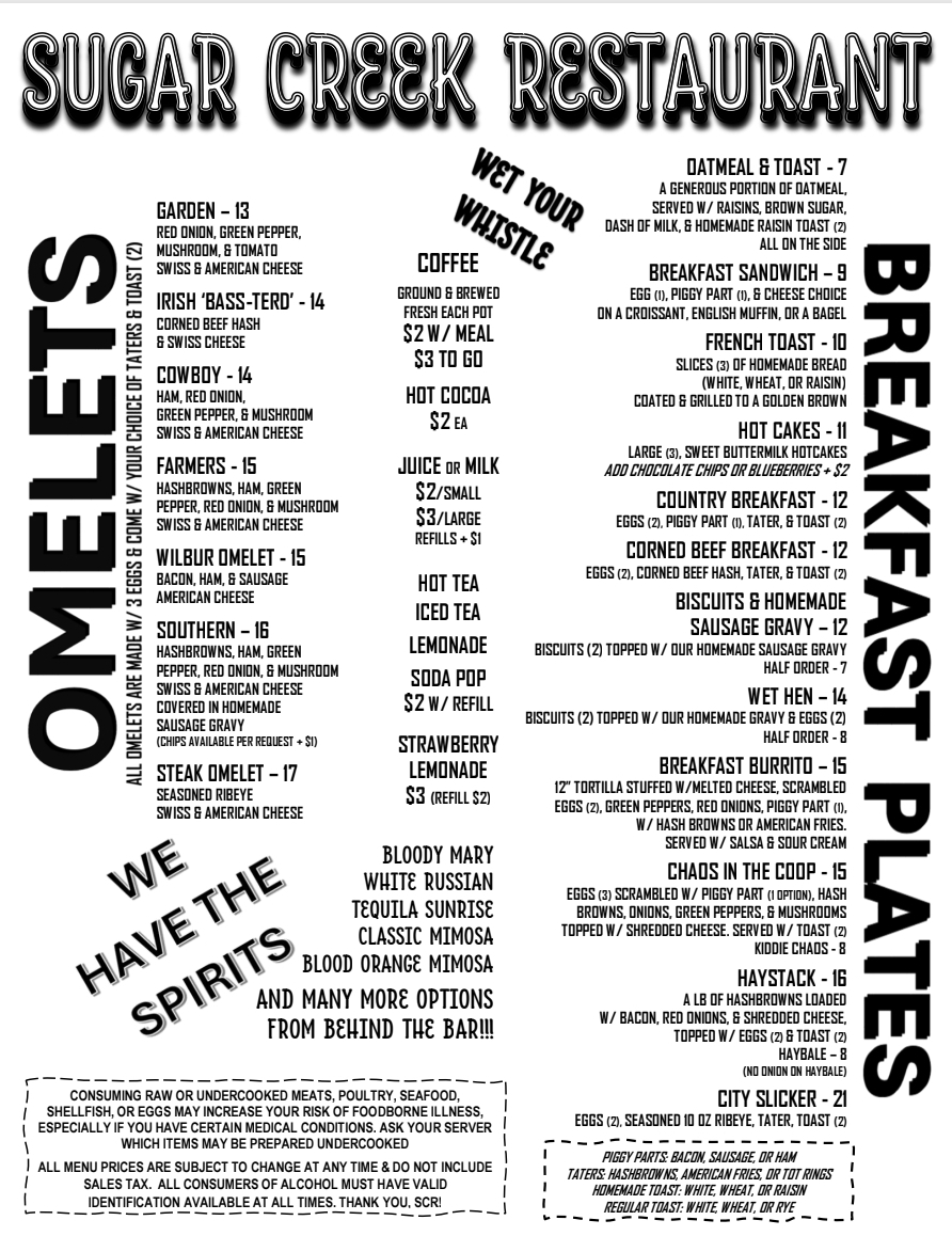 Introducing Sugar Creek Restaurant, a hidden gem located in the serene landscapes of Big Rapids, MI. Known for its warm, country-style ambiance, this delightful eatery is a must-visit for breakfast lovers and lunch enthusiasts alike. With a menu that features everything from hearty steak omelettes to generous chef salads, Sugar Creek ensures that every dish is prepared with care and generous portions.